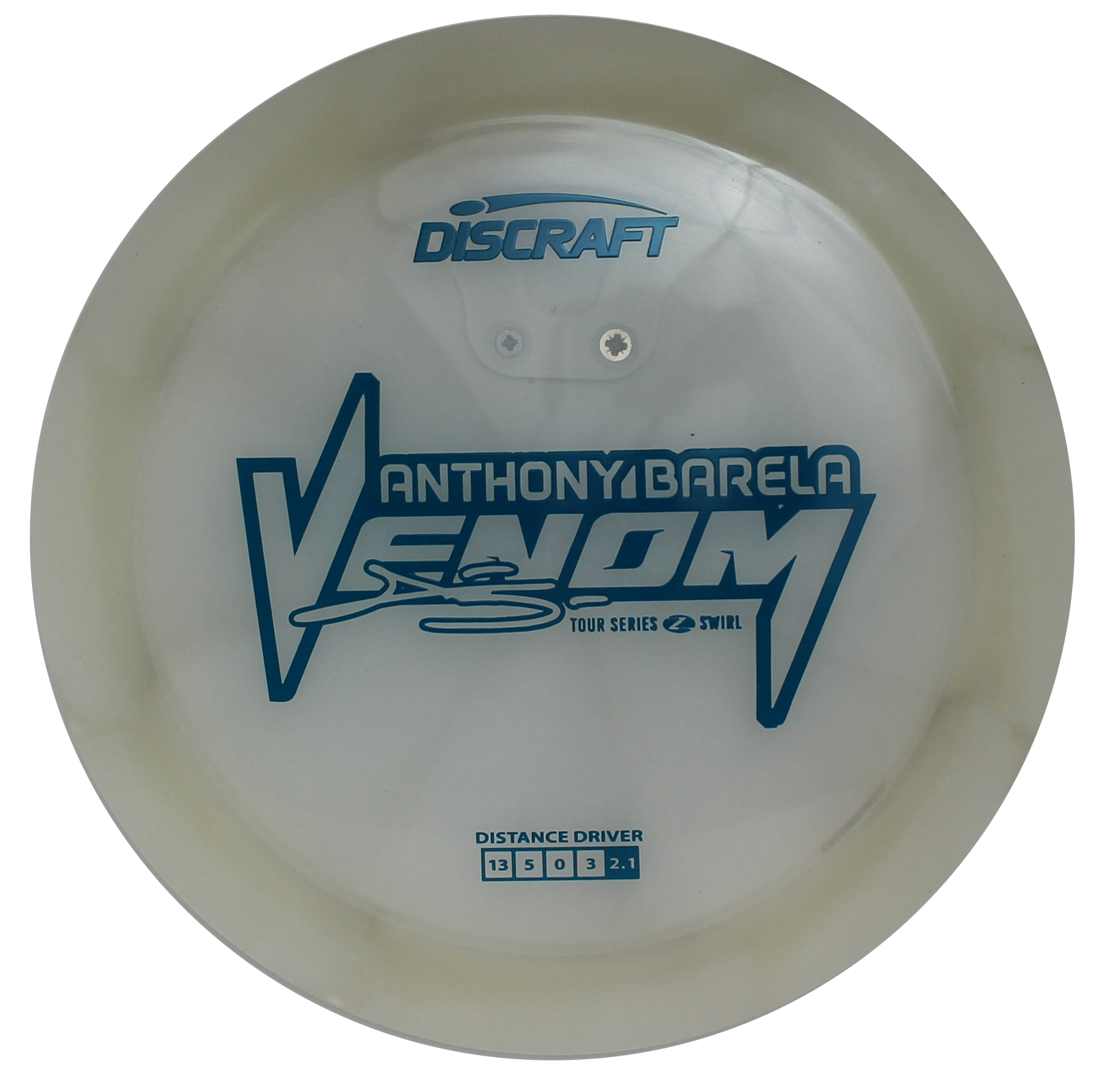 Anthony Barela’s 2025 Tour Series Venom is all gas—fast, overstable, and built for elite power. The Z Swirl blend softens the grip just enough for control, while keeping the Venom’s signature overstability intact. Designed for huge hyzers, force-over flexes, and skip shots, this disc was designed for you to reach your distance potential.